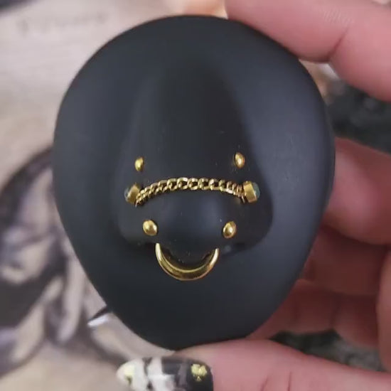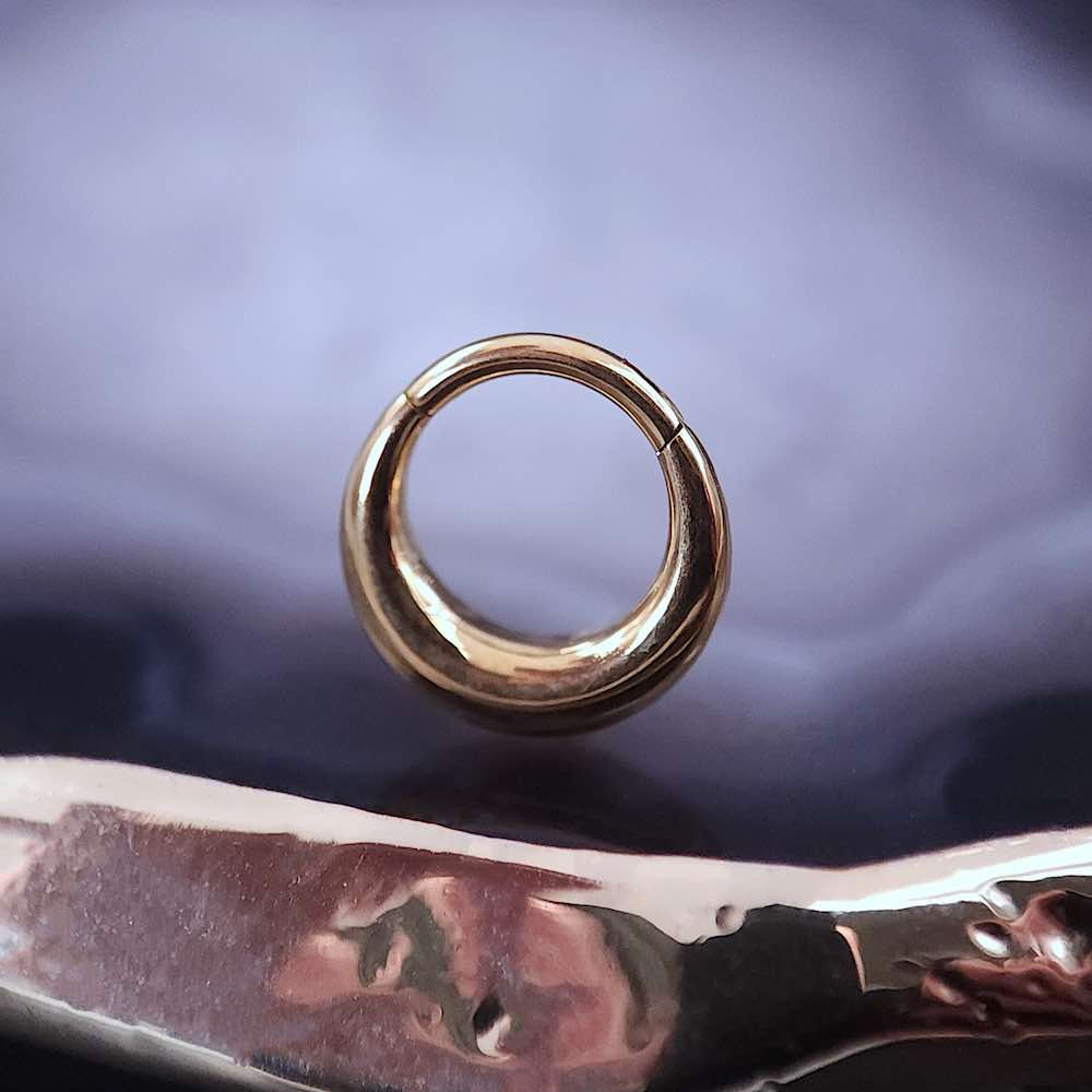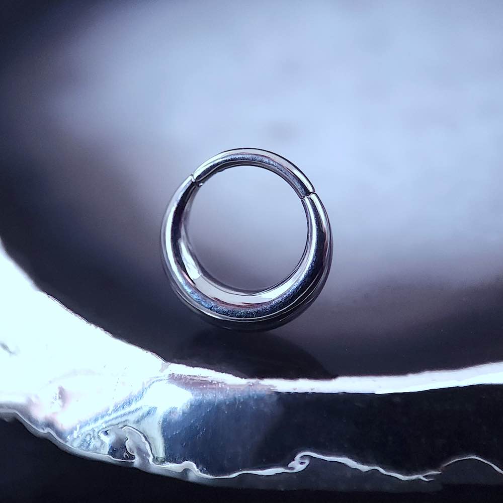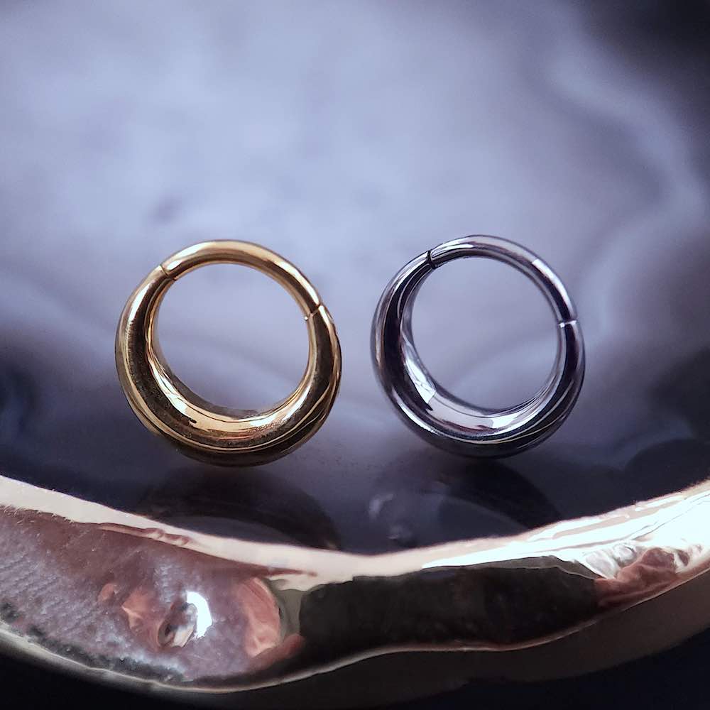Inspirado en la fuerza sutil de la luna creciente, “Crescent” es un clicker de líneas limpias y curvatura perfecta. Su diseño minimalista y sólido, aporta un toque elegante pero contundente a cualquier perforación. Ideal para quienes prefieren un impacto visual simple pero imposible de ignorar.