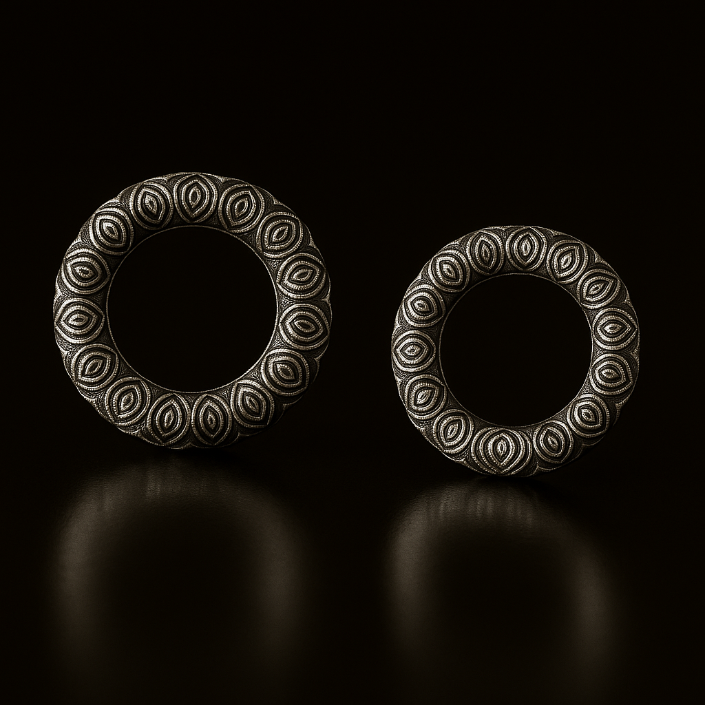 El diseño circular y texturizado ofrece un acabado ornamental, casi místico, que aporta volumen y presencia a cada expansión. Es una joya que no se explica, se impone.