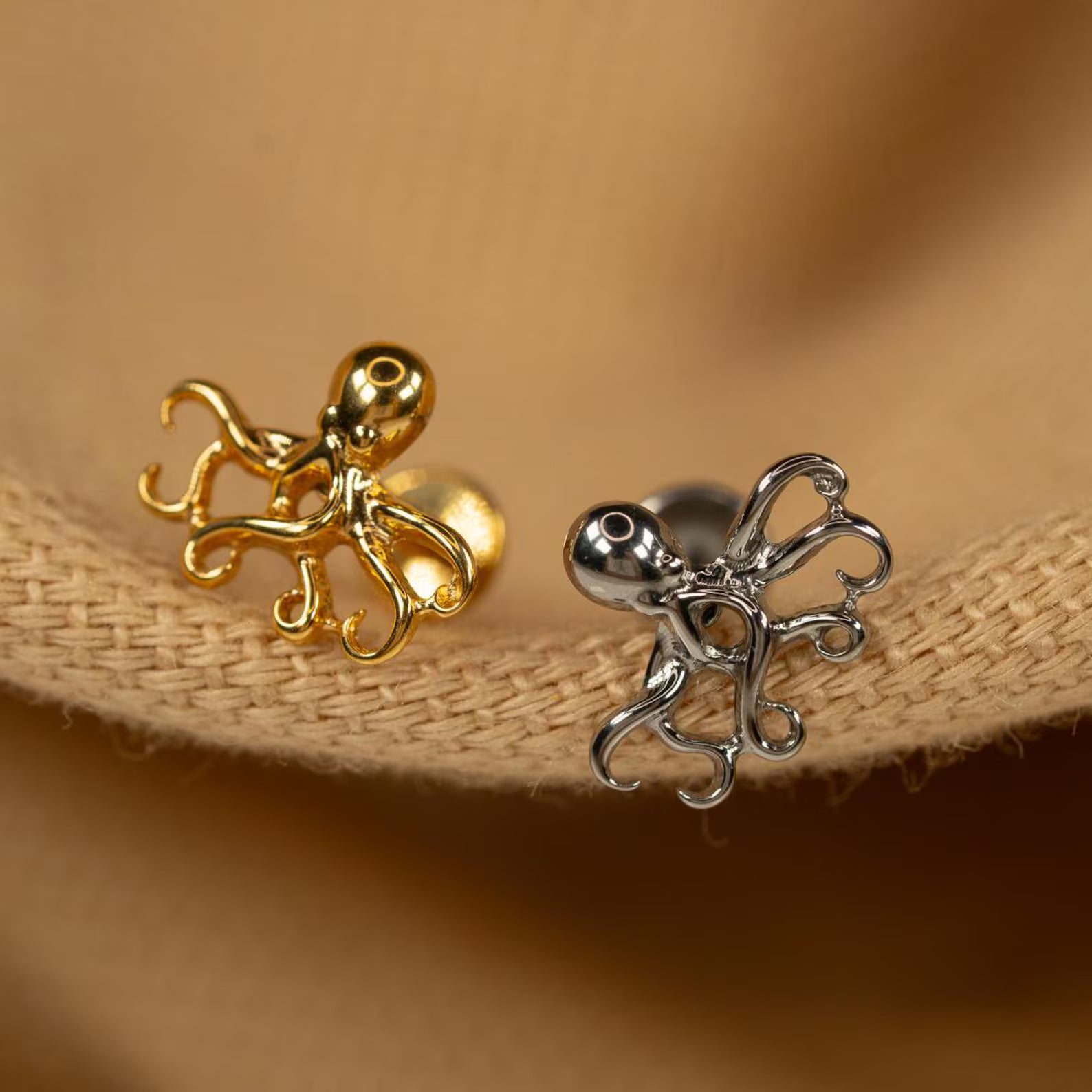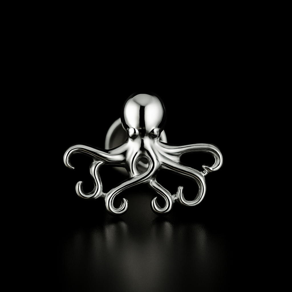 El AbyssOcto combina arte, fluidez y oscuridad en una sola pieza. Su silueta de pulpo estilizado, con tentáculos que se curvan como trazos líquidos, aporta un toque místico y único a cualquier ear curation. Es una pieza que se mueve entre lo marino, lo ritual y lo minimalista, transformando un simple piercing en un amuleto visual.