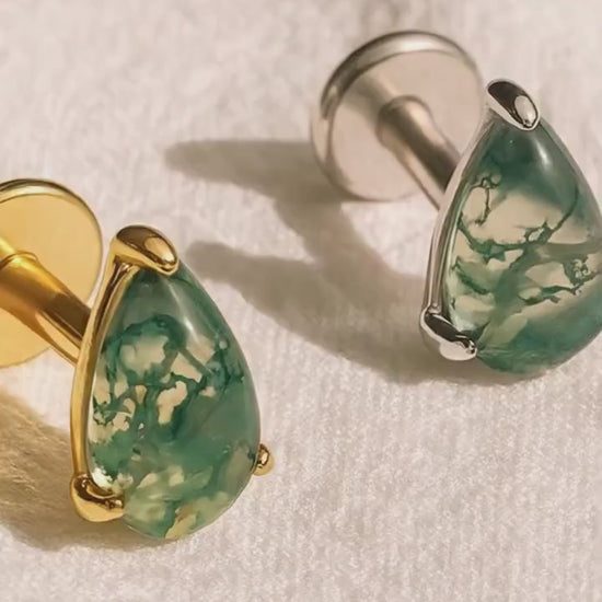 El Verdant Tear fusiona elegancia natural con una estética mística y sofisticada. Su piedra en forma de gota —con vetas verdes profundas sobre fondo marfil— crea un efecto orgánico único, como una gema sacada de un bosque antiguo.